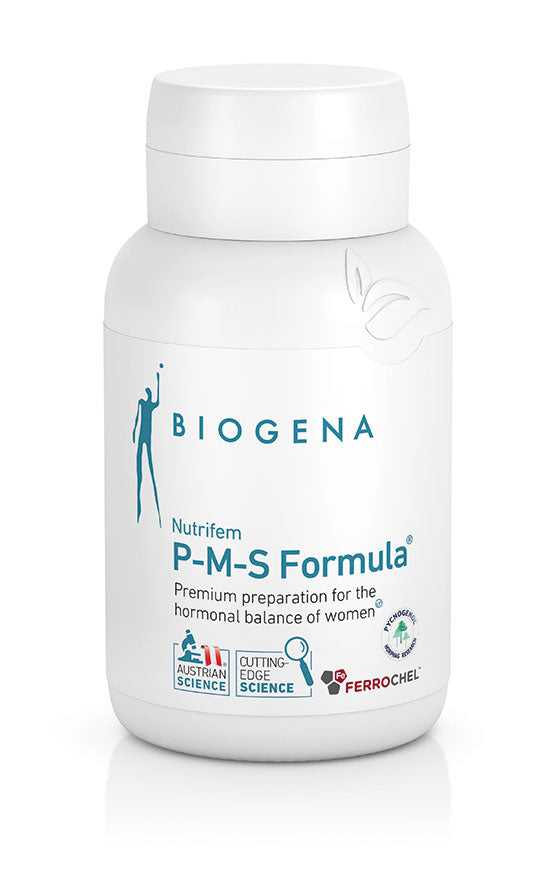 Biogena Nutrifem P-M-S Formula® provides a well thought-out combination of vitamins, minerals, trace elements and plant extracts from Ginkgo biloba, pine bark and monk pepper to support the hormonal balance of women.