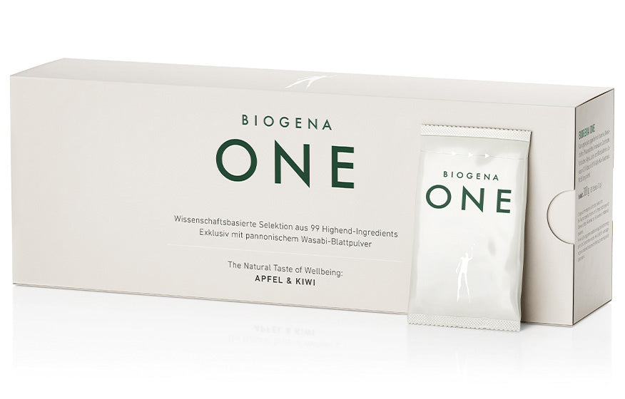Discover BIOGENA ONE - the next-generation green drink that brilliantly supports your daily nutrient supply with its 99 ingredients and is made for you and your potential development. BIOGENA ONE combines 99 high-end ingredients, interpreted with the refreshing fruitiness of apple & kiwi.