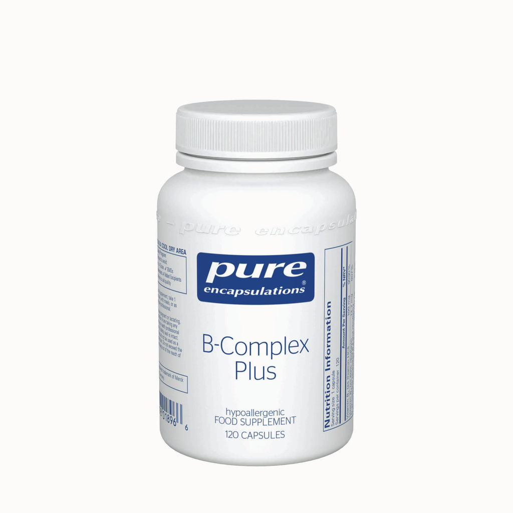 B-Complex Plus offers a comprehensive blend of B vitamins packed into one easy-to-take supplement. Includes active forms of B vitamins, including pyridoxal-5-phosphate, riboflavin-5-phosphate and folate as 5-methyltetrahydrofolate (5-MTHF), the universally metabolized and biologically active form.