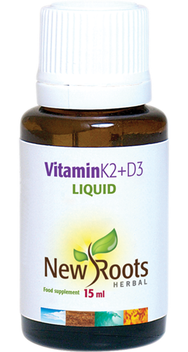 The daily dose of Vitamin K2+D3 from New Roots Herbal provides 120µg vitamin K2 (menaquinone-7) and 1 000IU vitamin D3 (cholecalciferol), formulated in a matrix of medium-chain triglycerides. This nutrient combination is fundamental for the maintenance of bone health.