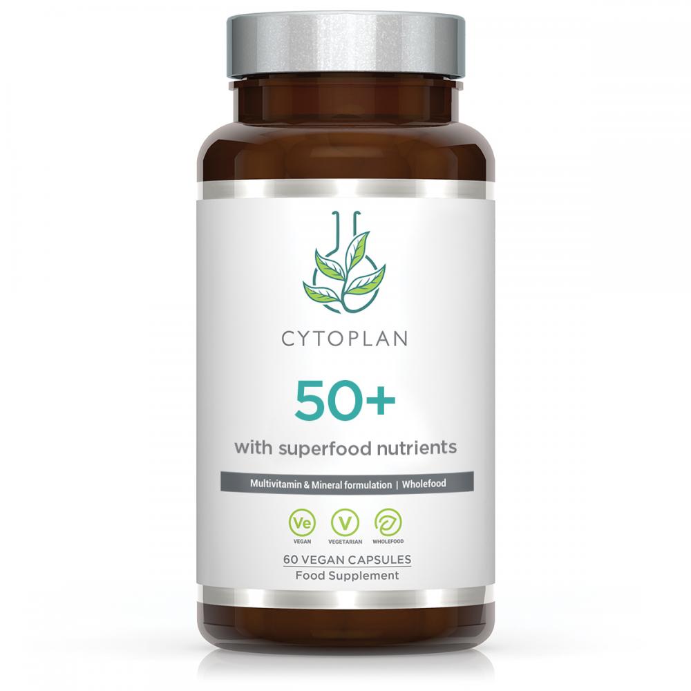 50+ is a comprehensive multivitamin and mineral supplement tailored to meet the needs of men and women over 50. It is now formulated with a UK first biodynamic and superfood fruit, vegetable and herb blend, which is especially rich in phytonutrients and active compounds.
