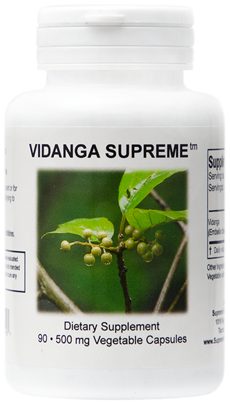 Vidanga Supreme is the powdered berry of the plant Embelia Ribes. These berries have a long history of use going back over 2,000 years in both Unani and Ayurvedic medicine. It is also known as false black pepper and is native to Asia and India. Literature shows potential key indications to be for Parasitic worms, as well as with methylation and hyper homocysteinemia issues. Research shows the potential beneficial uses:1) Anthelmintic (expels worms)- including ascarides (a common small intestine inhabiting worm) (1) and Tapeworms (syed). The worms can often be observed in the stool. In acute worm cases, Ayurvedic texts recommend a dose as high as 2-3 gms daily for children and 6-12 grams for adults for several days (3). 2) Hyperhomocysteinemia (4,5) -an animal study demonstrated that rats with hyperhomocysteinemia significantly decreased the levels of homocysteine, LDH, total cholesterol, triglycerides, LDL-C and VDL-C and increased the HDL-C levels in serum. The results were comparable to folic acid. Clinically this is a fascinating study as at Supreme Nutrition Products we prefer to use herbs to isolated chemicals. It is unknown at this point whether it up regulates certain genes, or acts as a methyl donor to achieve this but we encourage you to try it in cases that need methylation support. 3) Antibacterial activity, including staph mutans, known to contribute to dental carries and plaque as well as other forms of staph (6). It is often added to oil pulling formulas due to the aforementioned effects. It should be looked at as a broad spectrum antimicrobial as it also has effects against certain fungi. 4) It has strong analgesic properties (7)5) It has been used as a reversible contraceptive agent for both males and females (8,9). There is much research on this but do not recommend it for this purpose as a sole contraceptive agent. We do advise you though to not take it if you want to initiate a pregnancy in the near future. 6) Possesses anti-convulsant activity (10)7) Antipsychotic activity (11)References available on request.